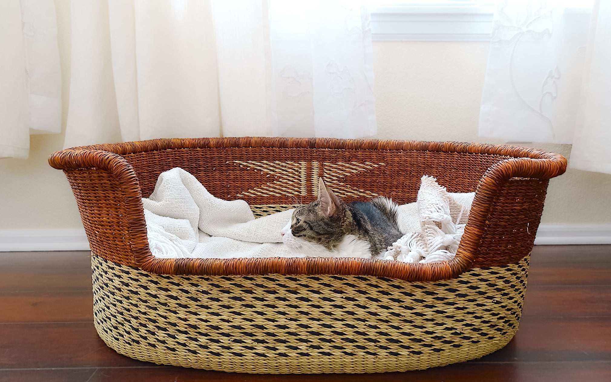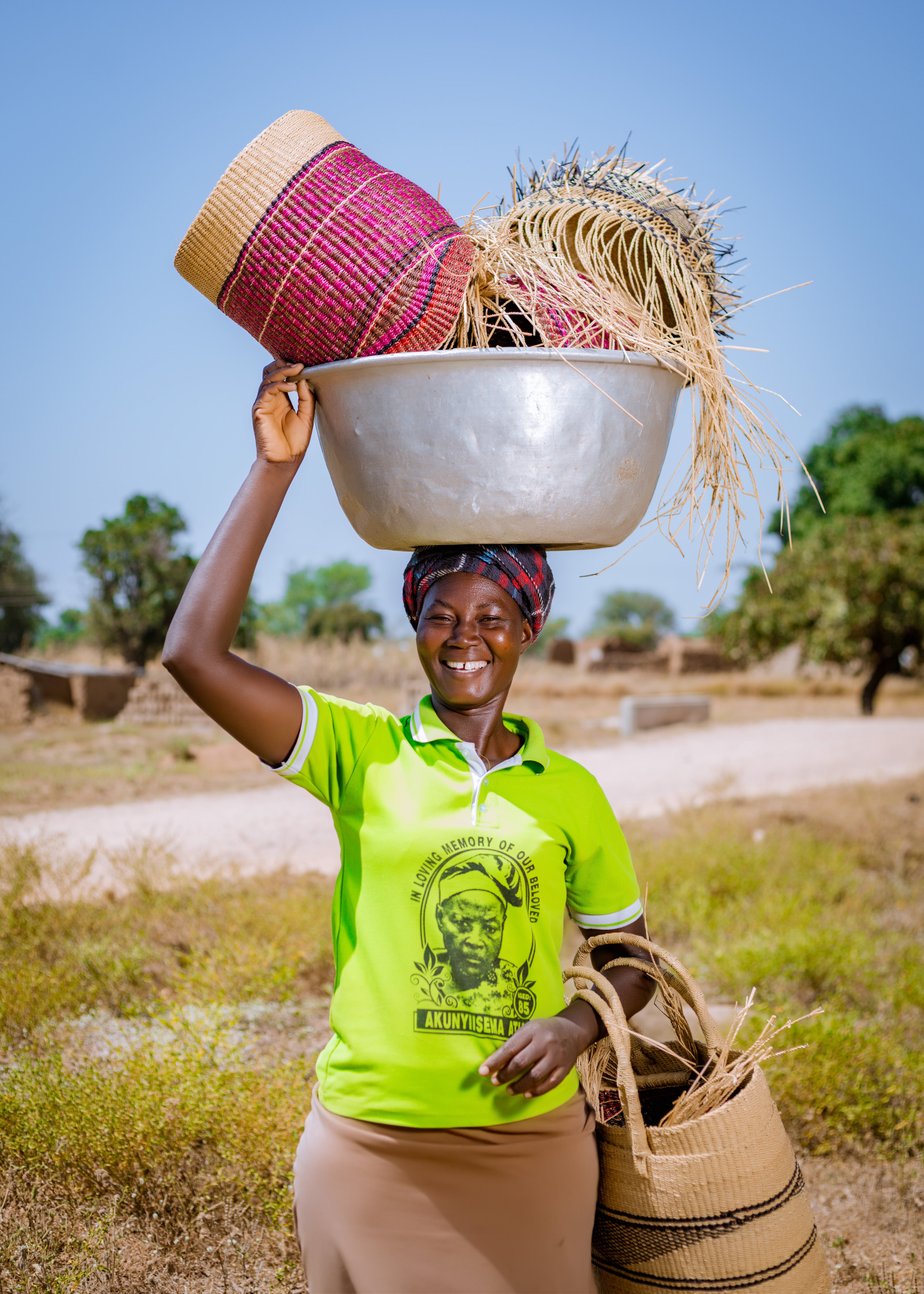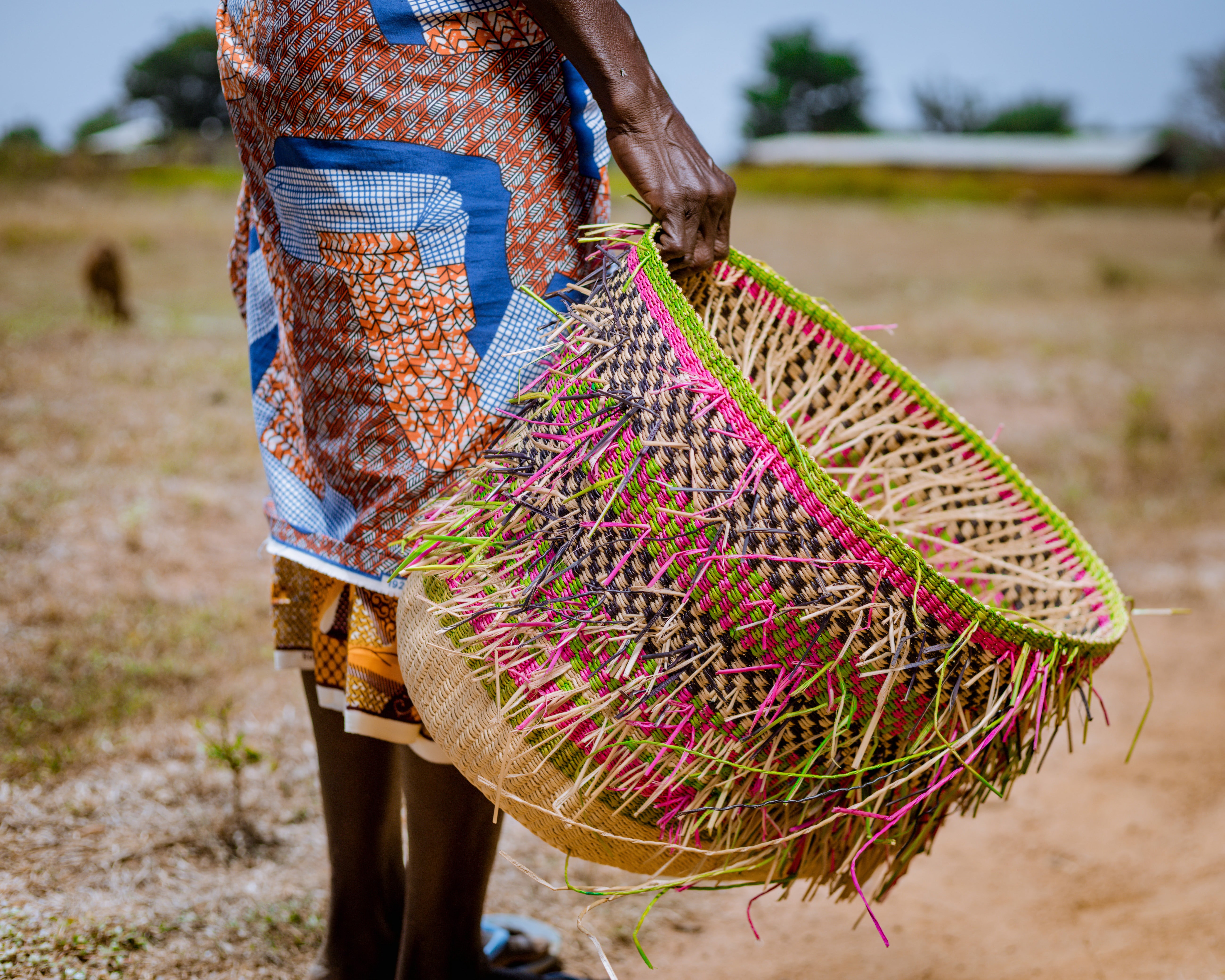 Handcrafted in Ghana, Ti-a's baskets are made with Kinkanhe grass and a vibrant spirit. Functioning beautifully as decor, art and fashion with a talented weaver behind every basket.