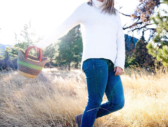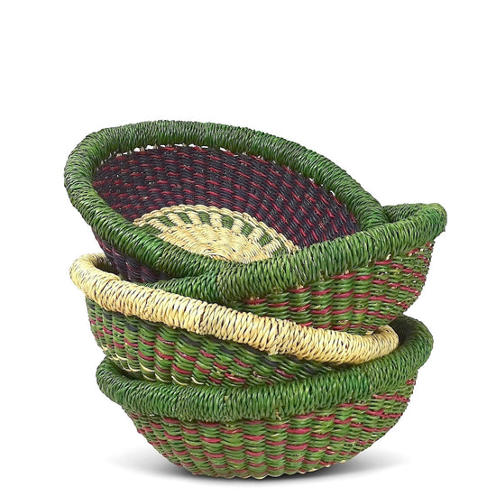 Handcrafted in Ghana, they're made with Kinkanhe grass and a vibrant spirit. They function beautifully as fashion, storage, or art, with a talented weaver behind every basket.