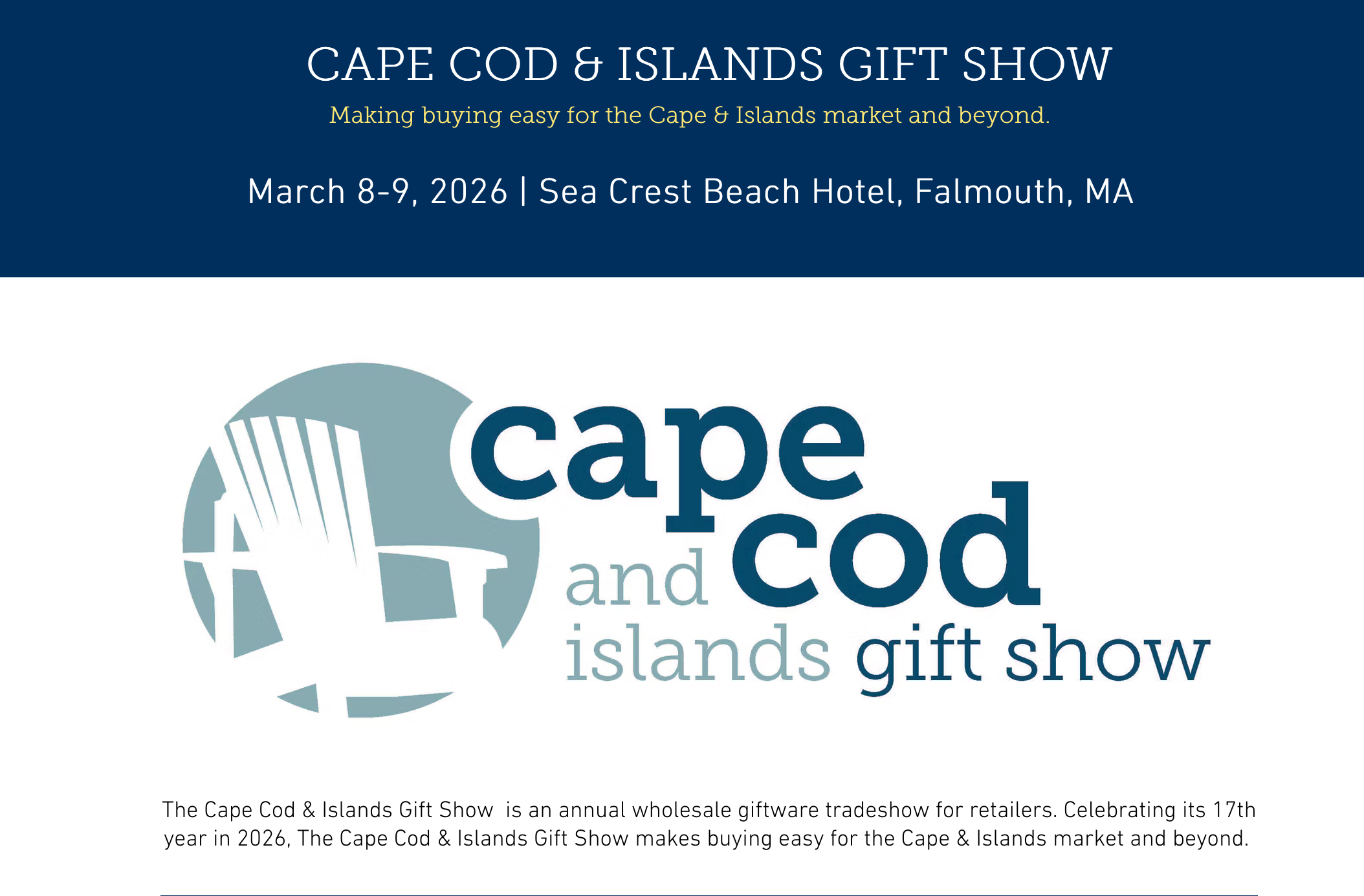 The Cape Cod & Islands Gift Show is an annual wholesale gift ware trade show for retailers. Celebrating its 17th year in 2026, The Cape Cod & Islands Gift Show makes buying easy for the Cape & Islands