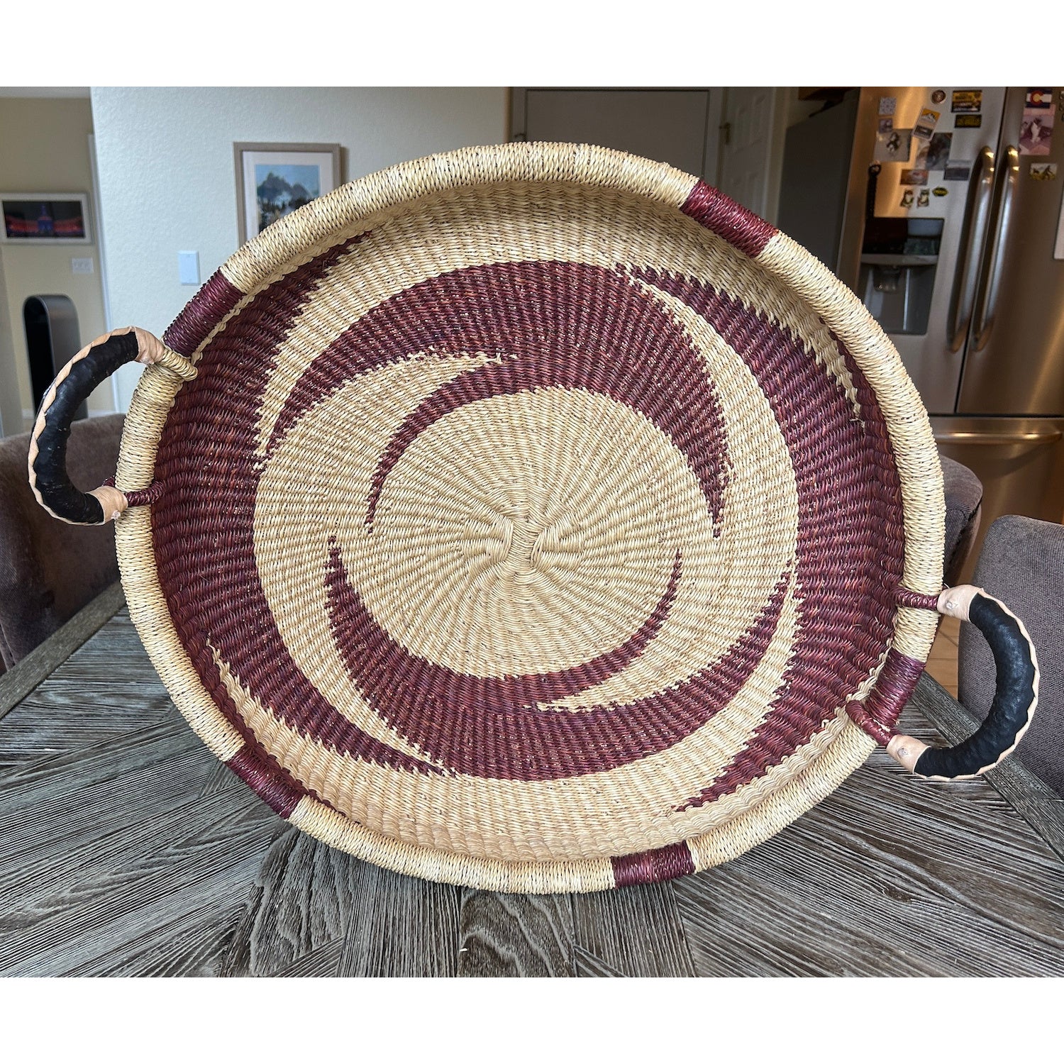 Made of African grass and leather accents, the bold neutrals can both energize and ground a large open room.