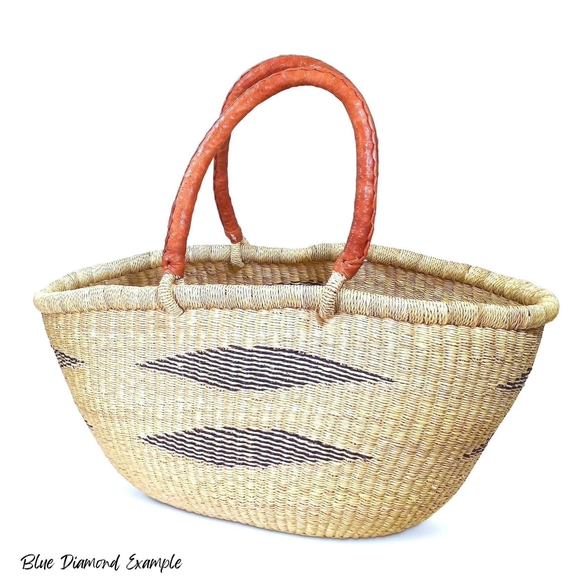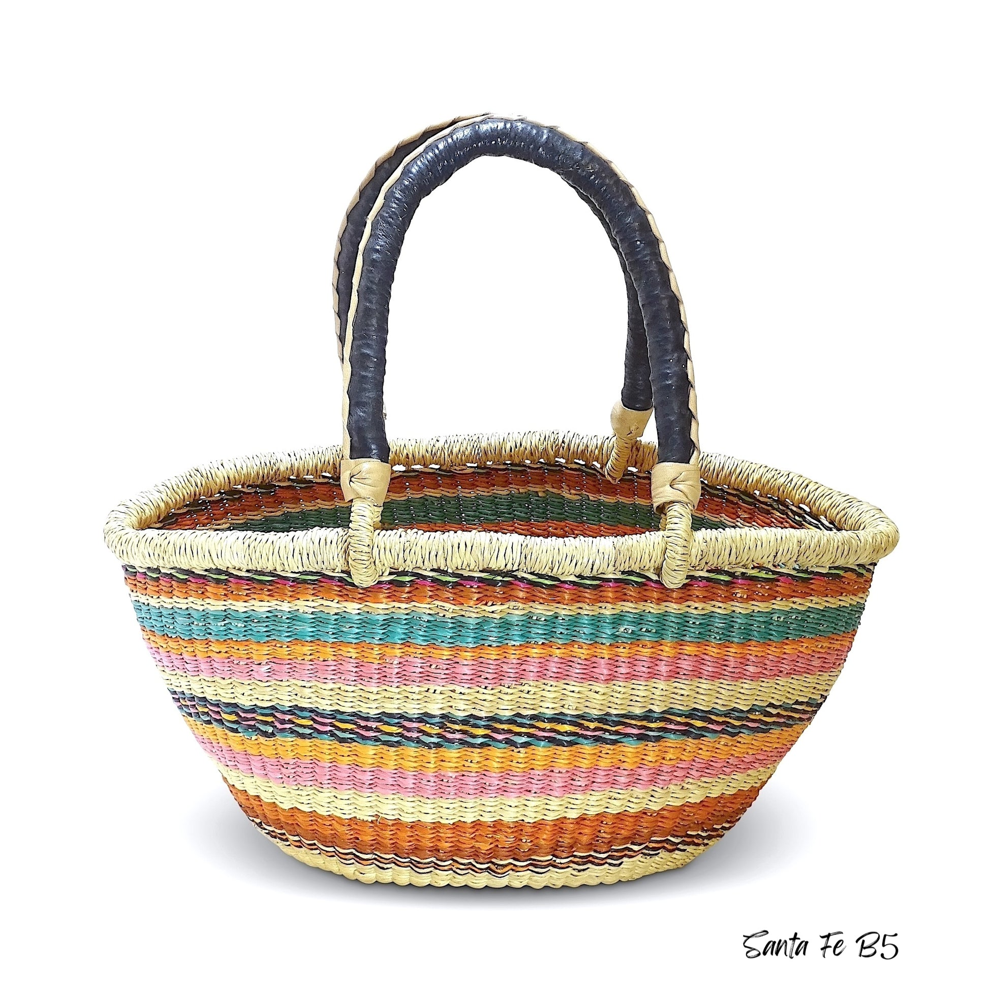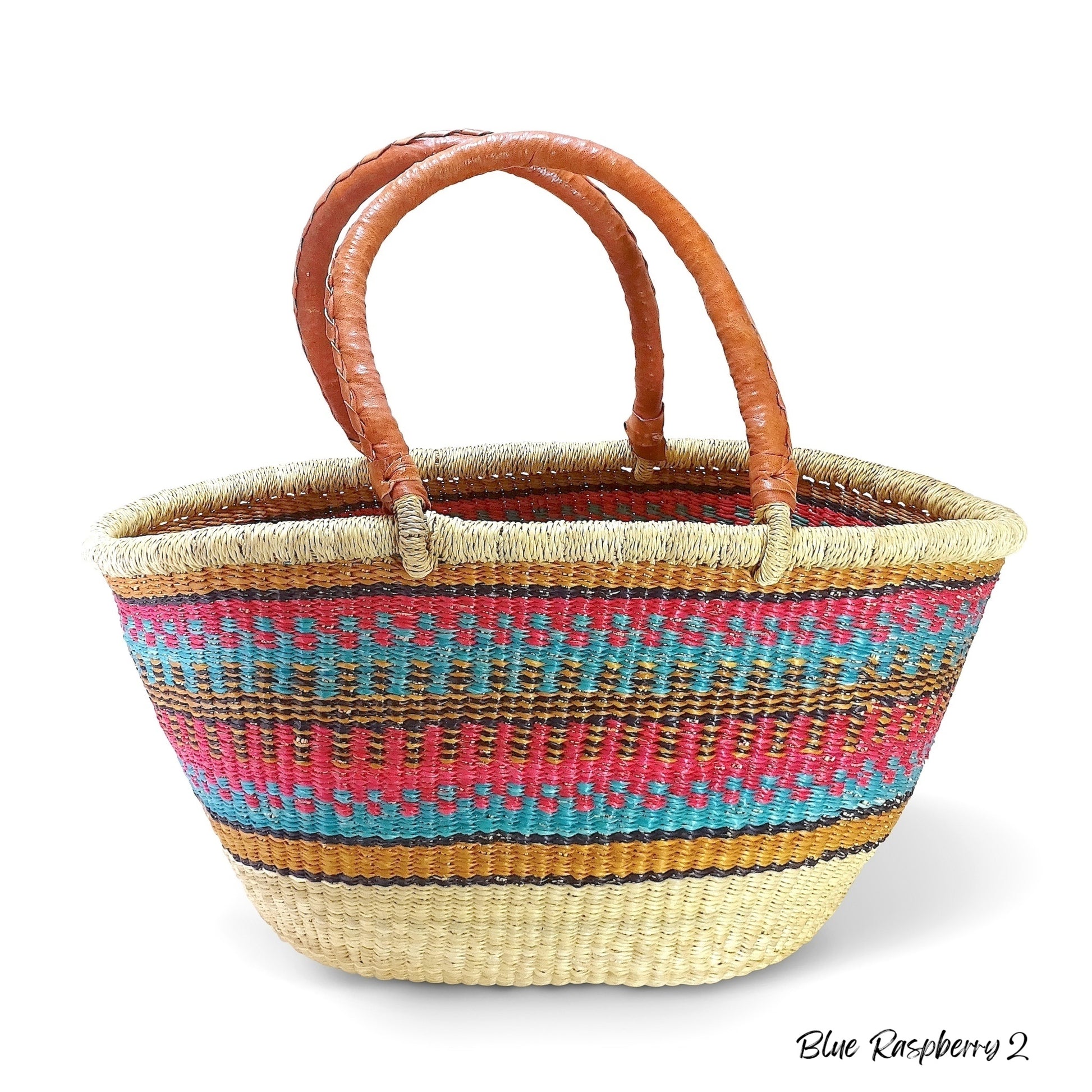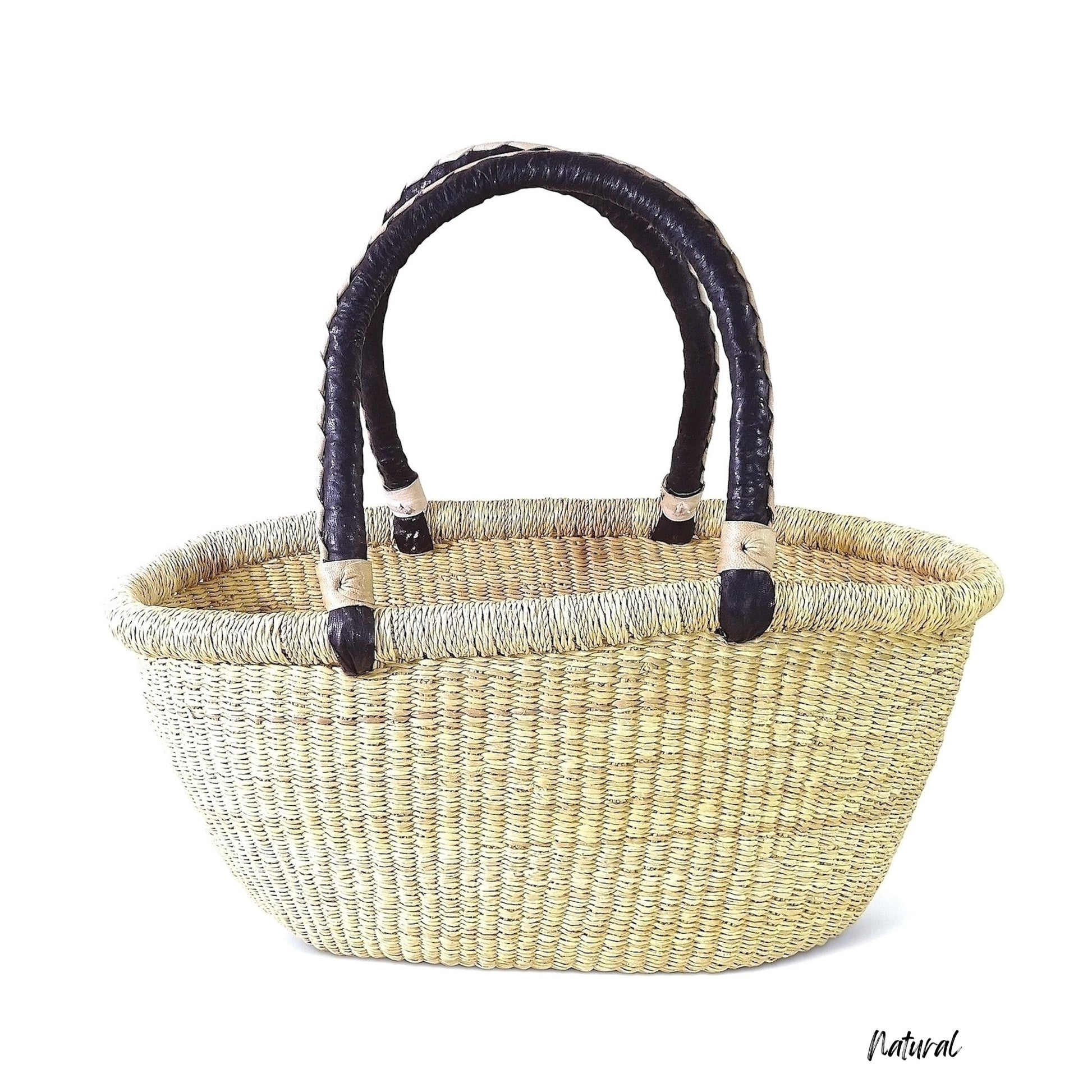 Made of durable grass and leather, our tote is sturdy for car trips and at-home storage.