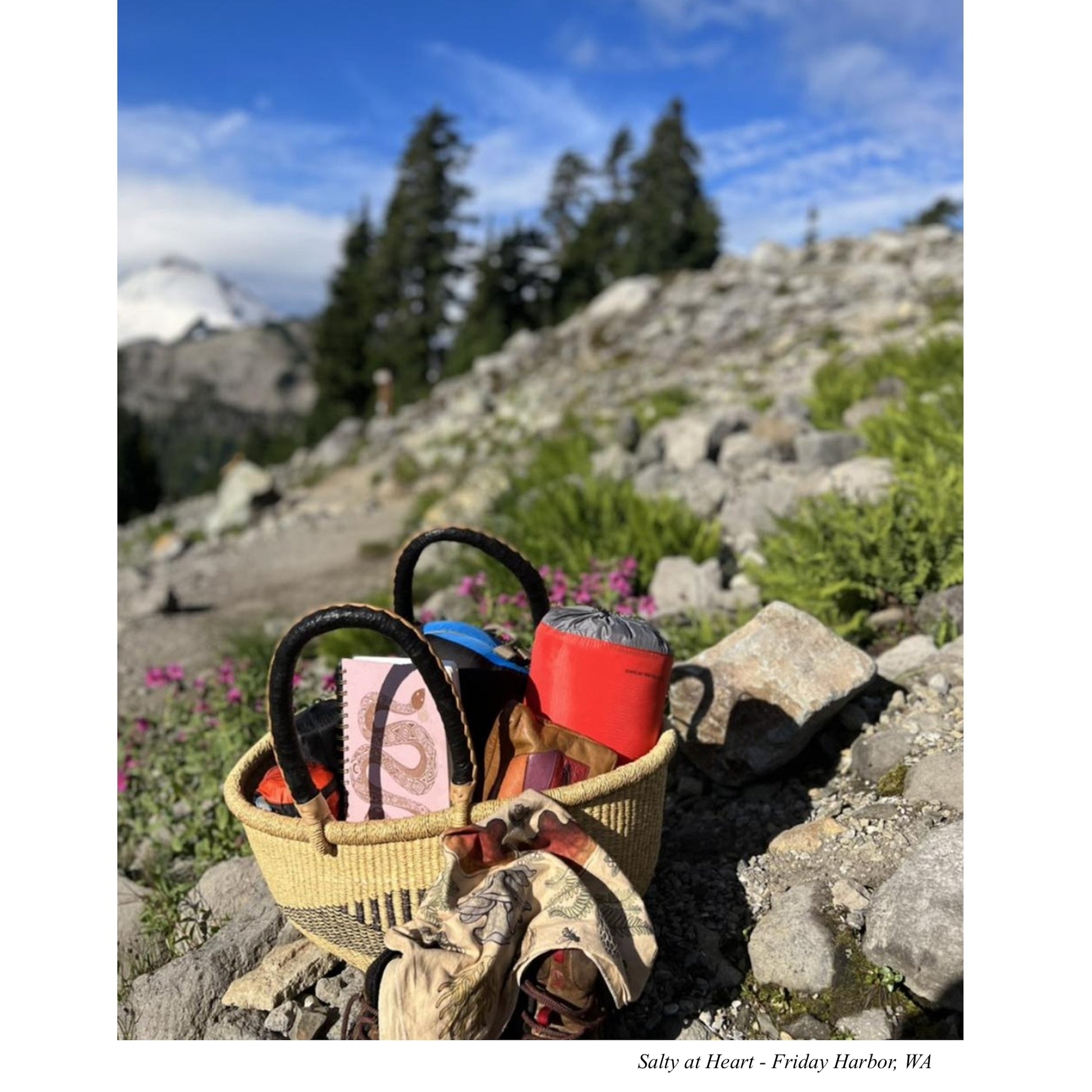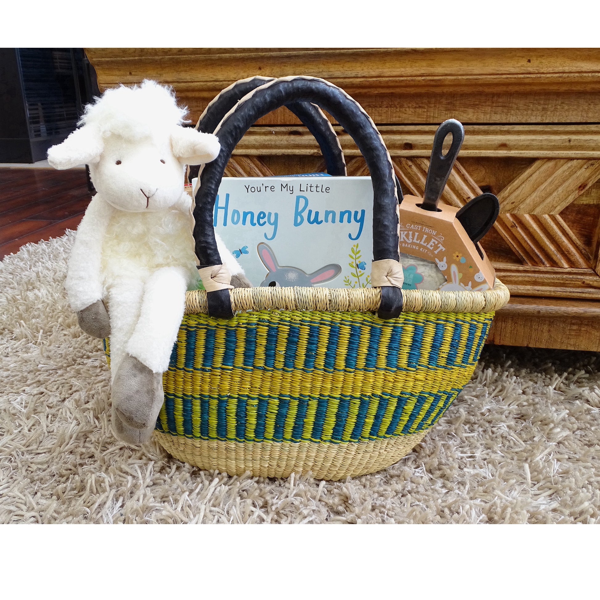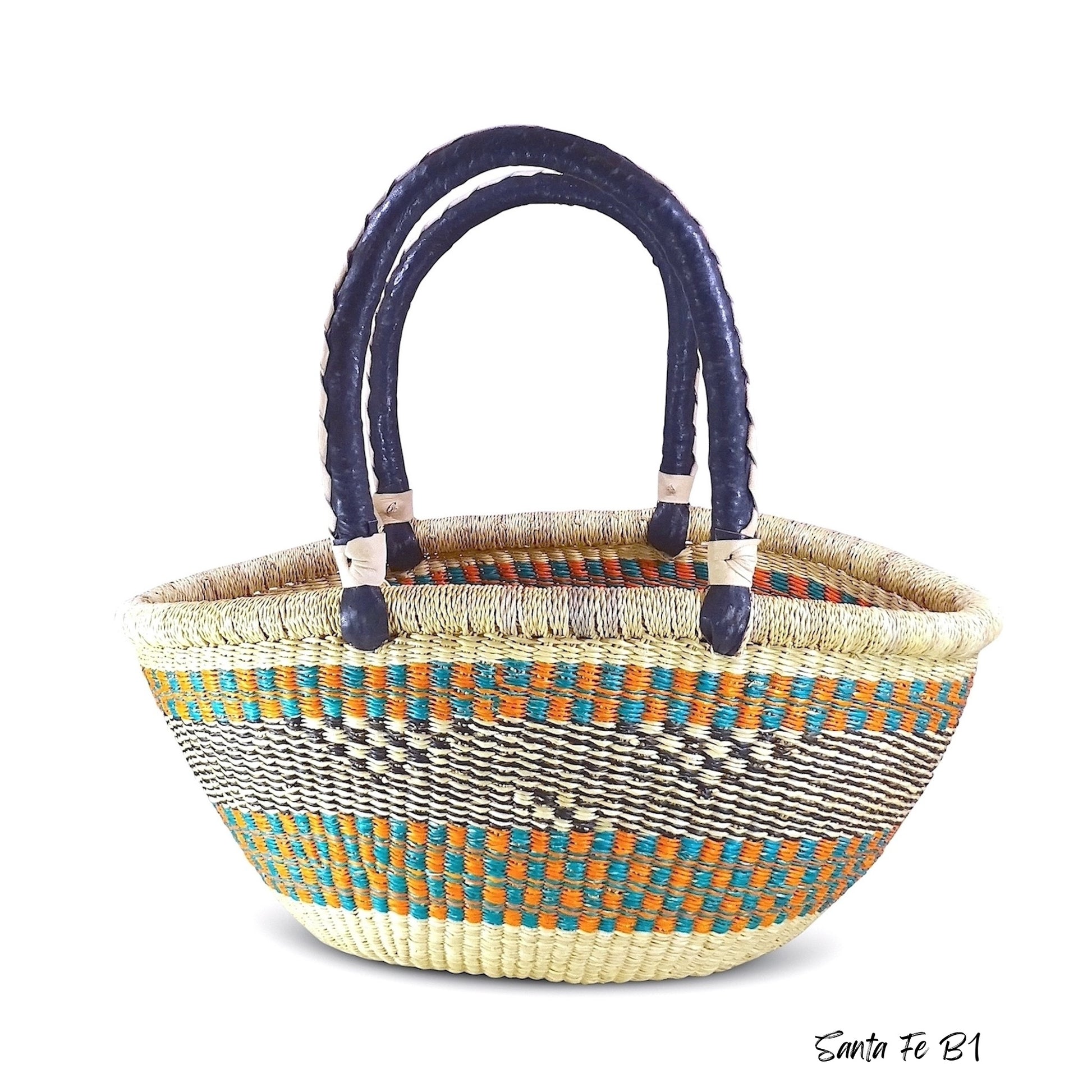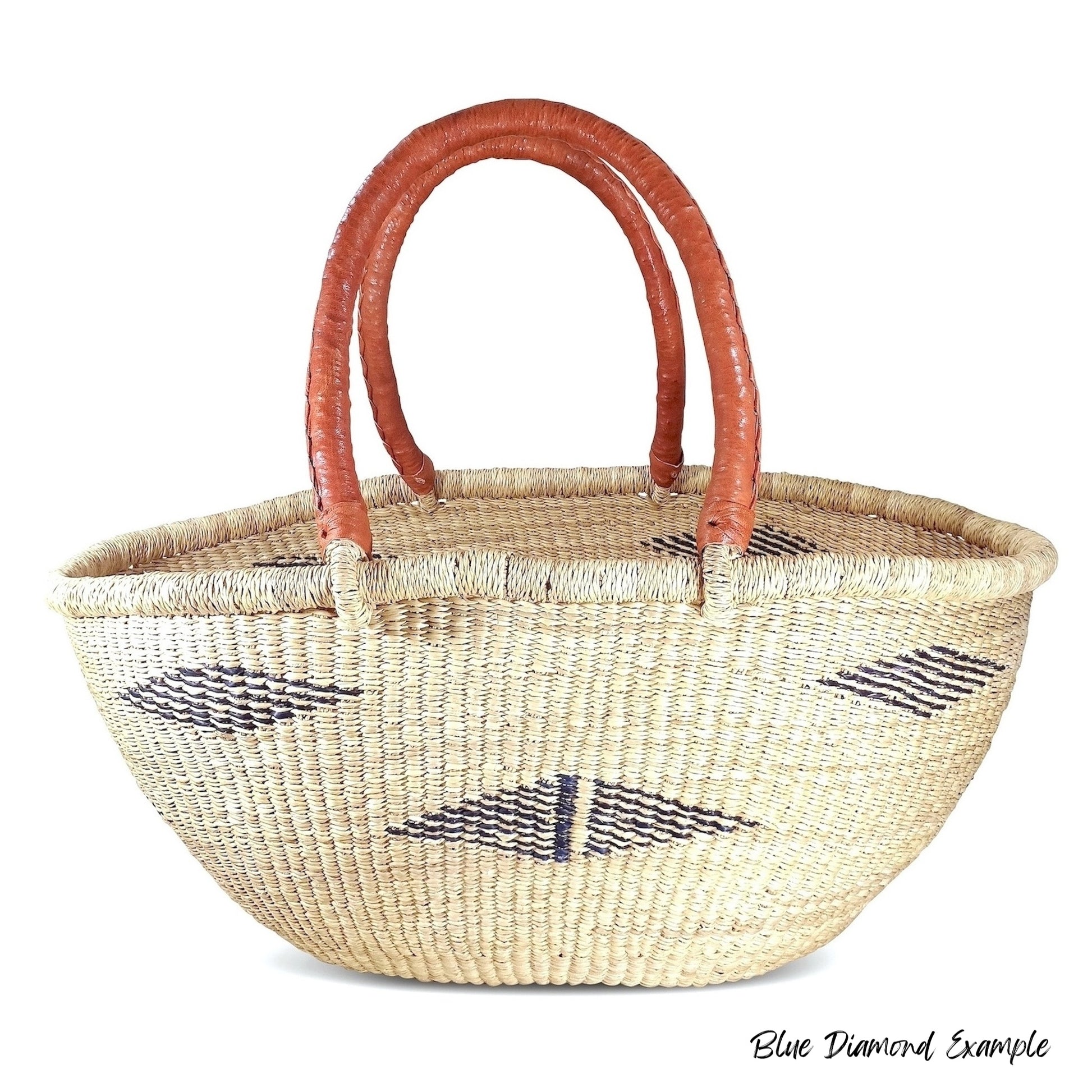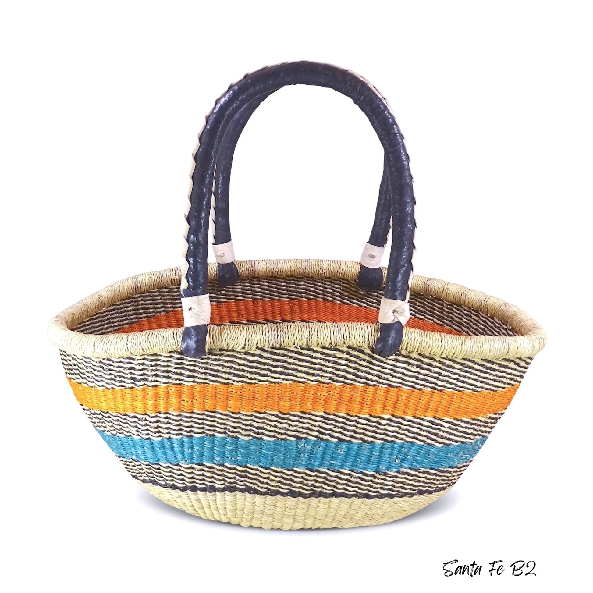 Made of durable grass and leather, our tote is sturdy for car trips and at-home storage.