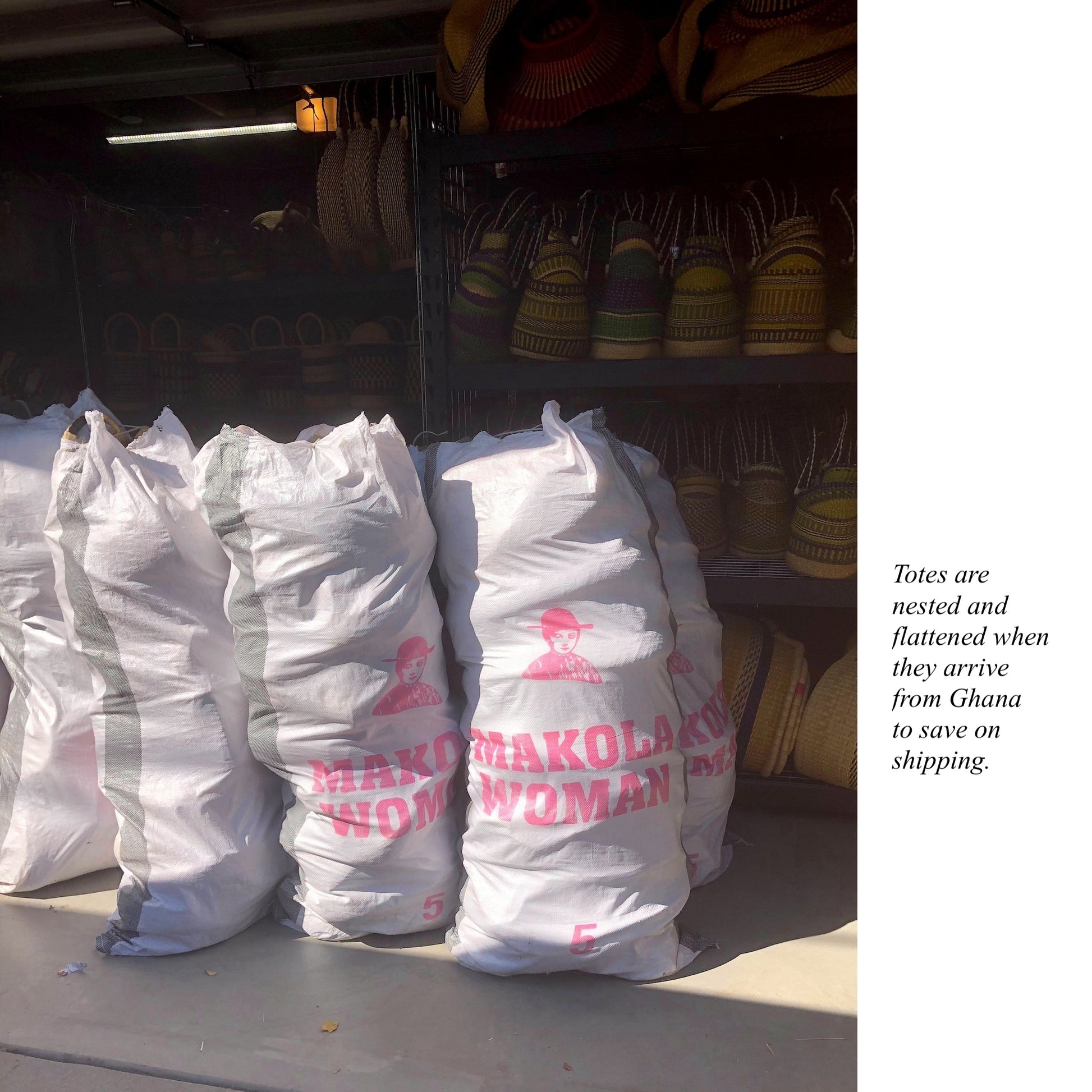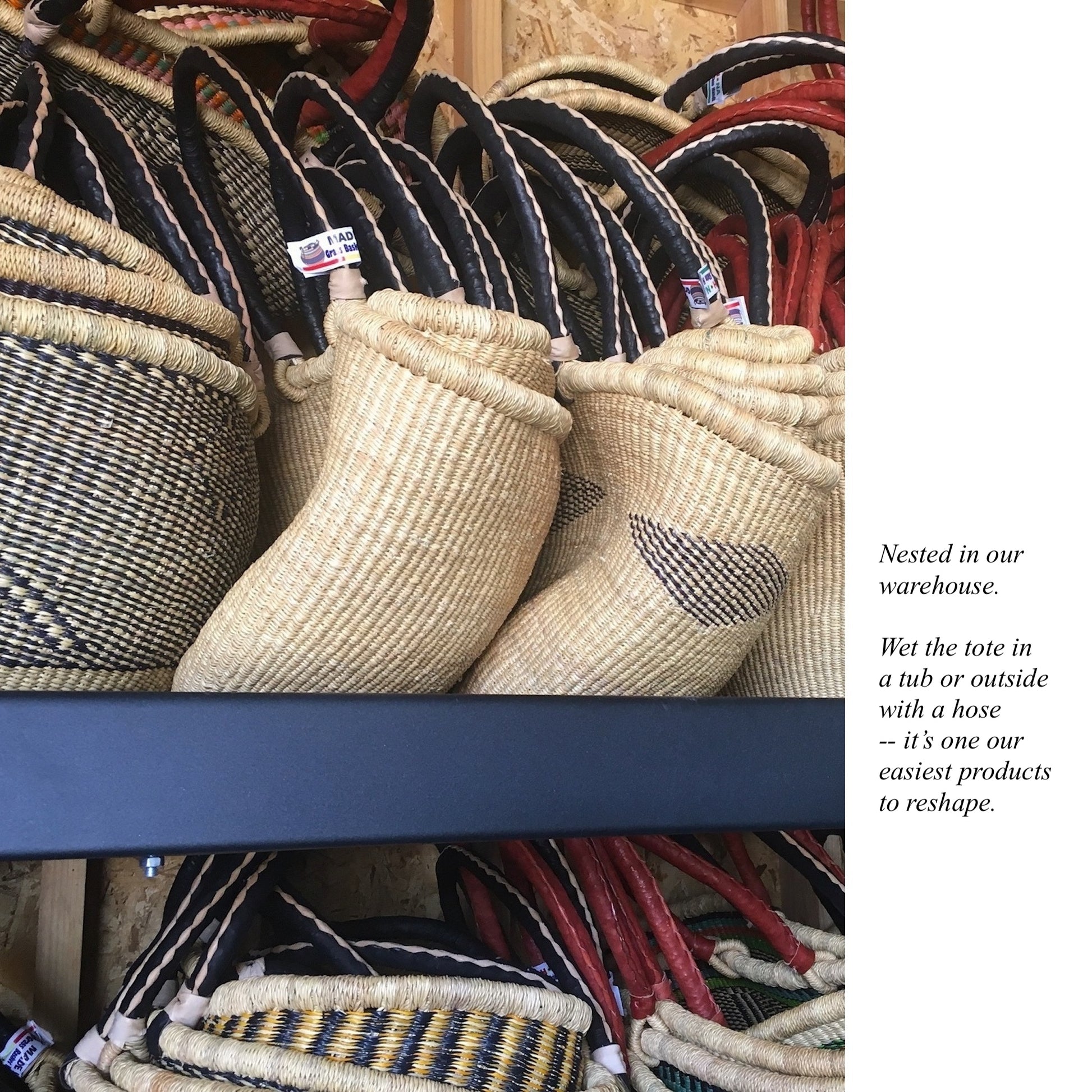 -- Totes are nested when shipping. They’re easy to hand shape for use: Wet the basket, handles included, and press the body out and around for symmetry. The handles will have some give; press their sides together for your ideal look.