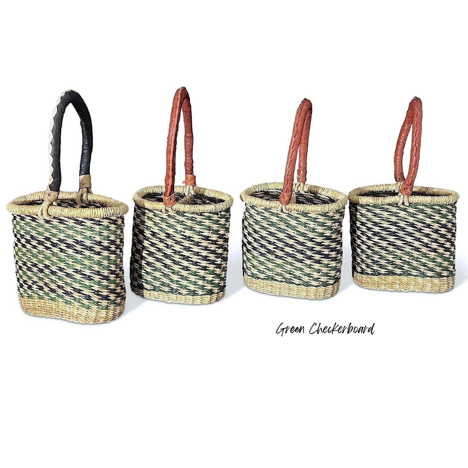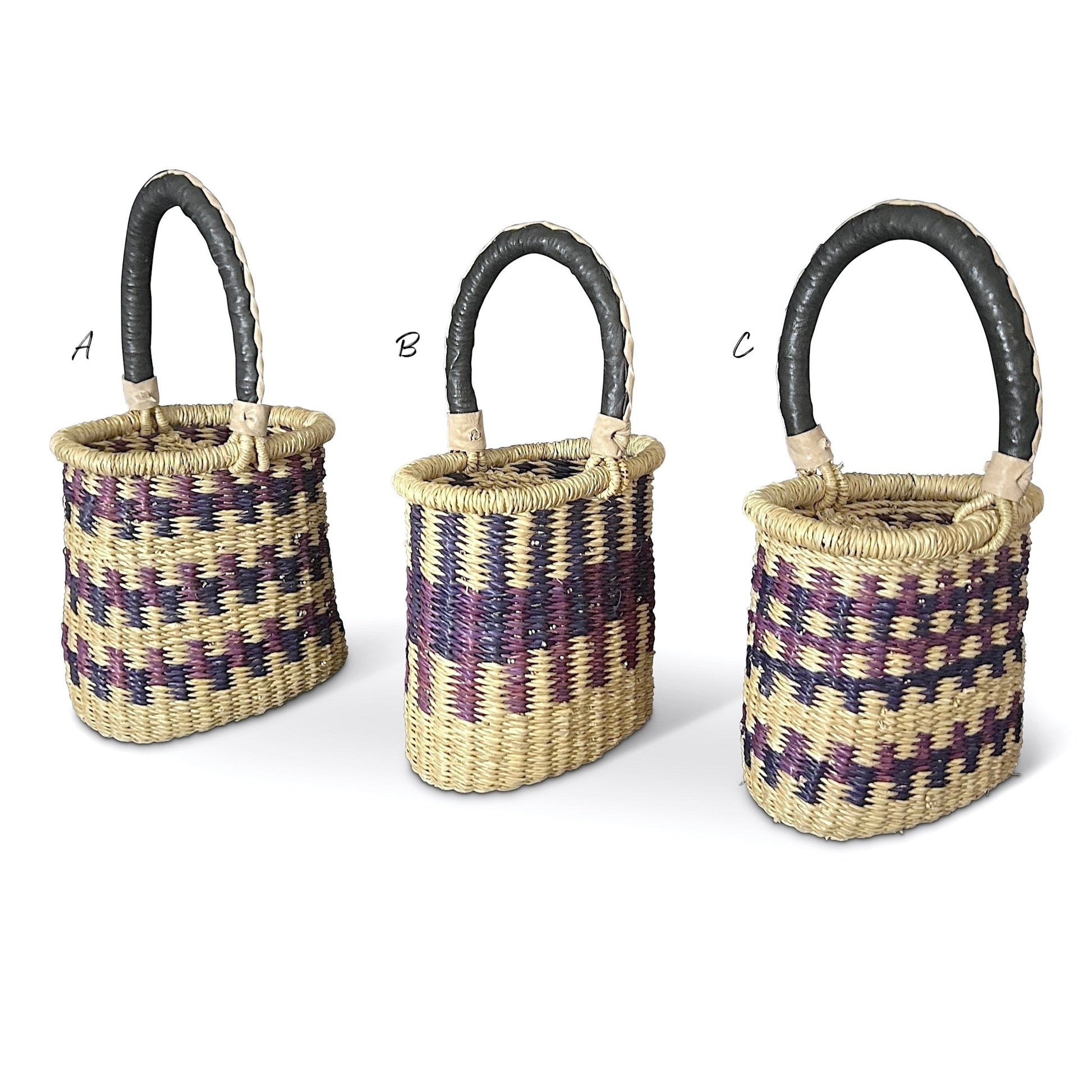 Our wine caddy is eco-friendly, too. The grass is called Kinkanhe, a wonder that grows rapidly in Africa without much water. The handle is made of leather from family-raised goats: many homes in rural Ghana have a small farm for sustenance.